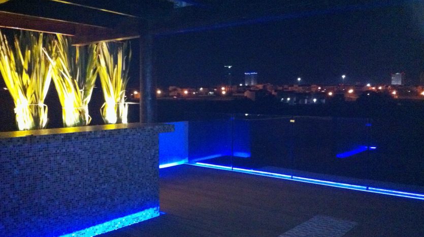 Roof Garden con piso de madera Teka, sistema de sonido ambiental Bose, iluminación LED y suviazador