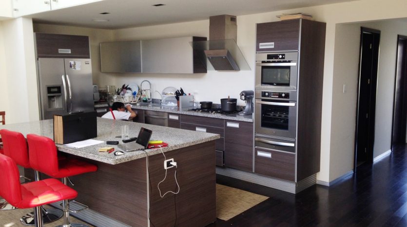 Pisos de madera de bambú, placas de mármol en baños, cisterna de 10,000 litros, hidroneumático