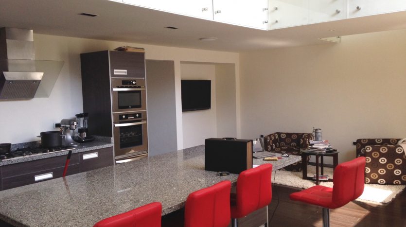 Cocina integral equipada con barra de granito natural