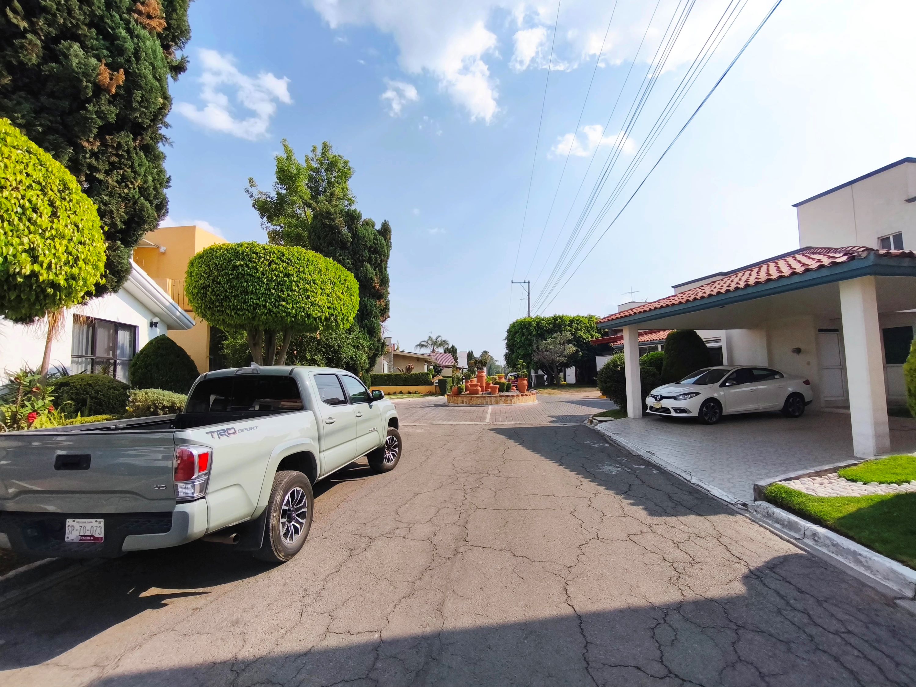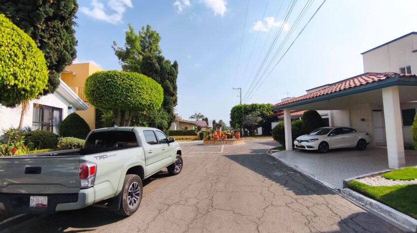 • Cochera techada para dos autos con espacio para estacionar 3 autos más parte frontal