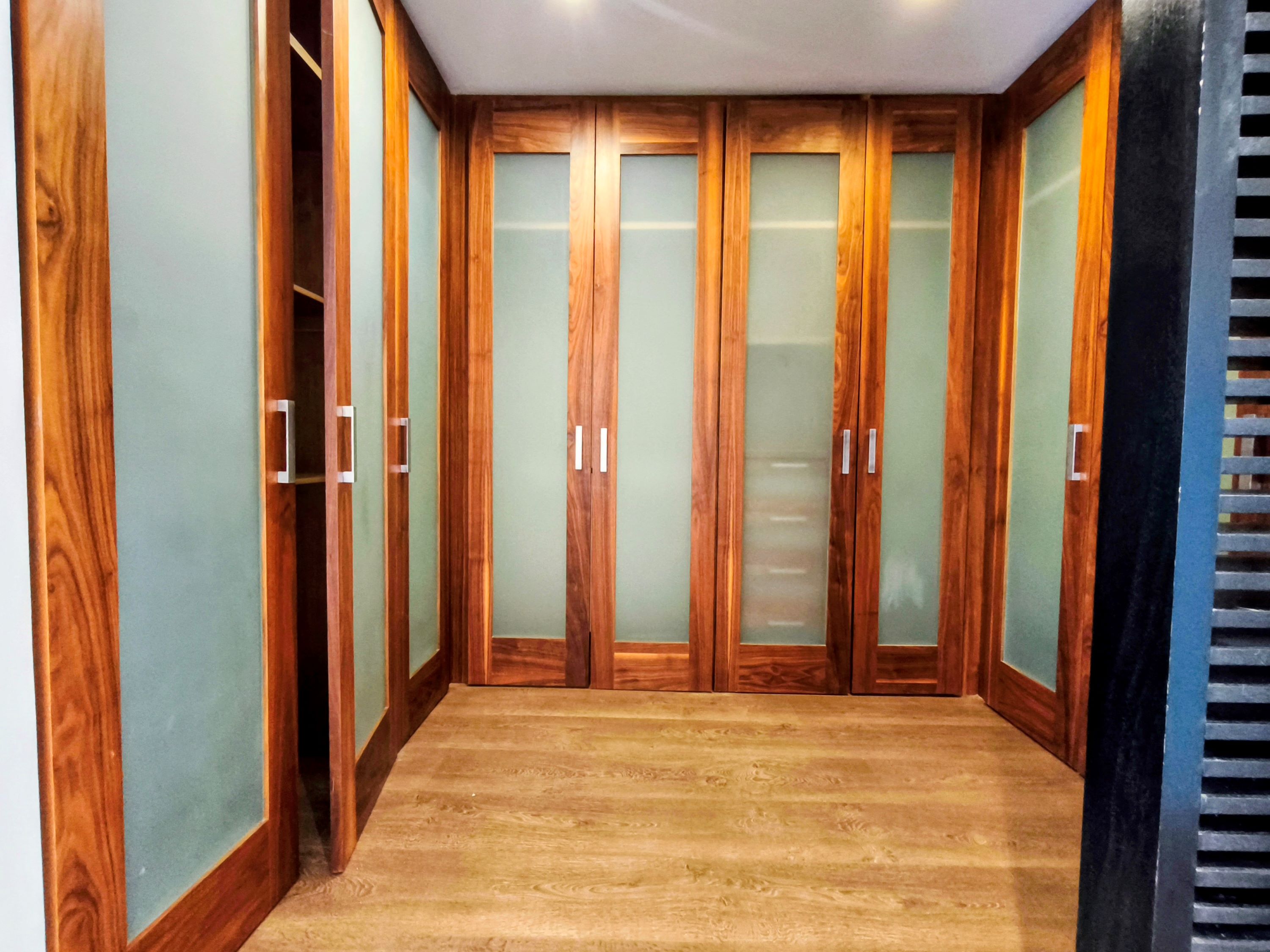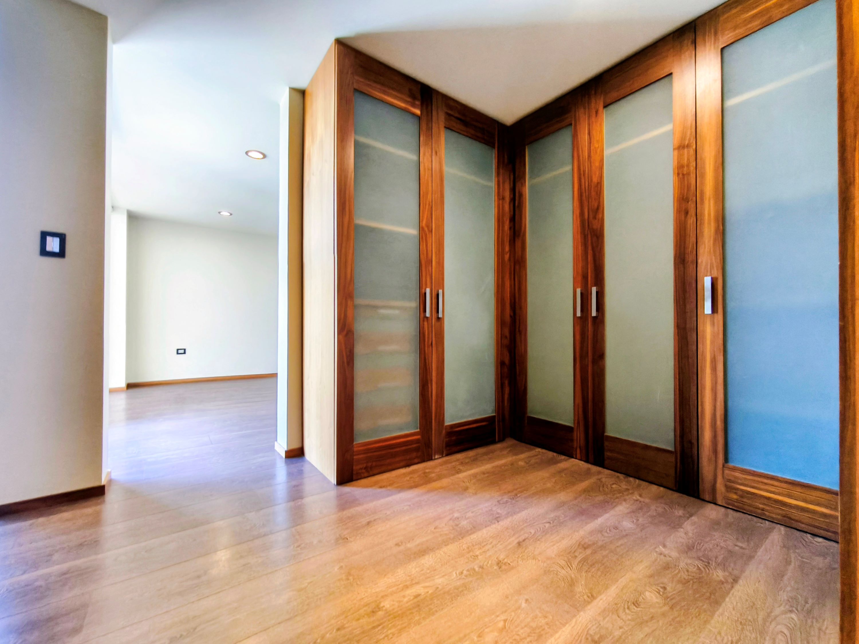 Vestidores amplios con carpintería en madera natural