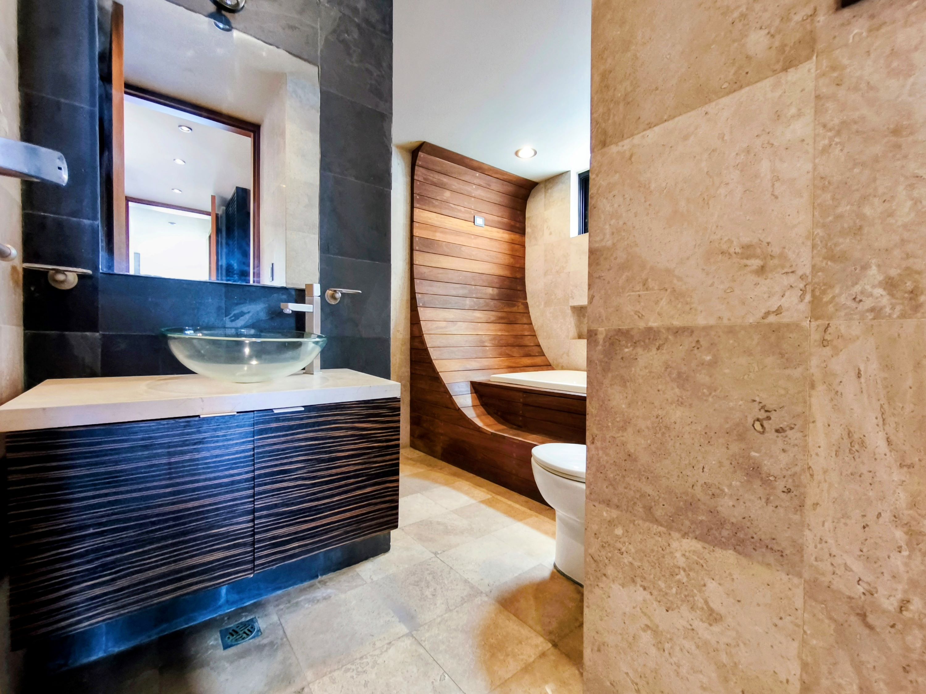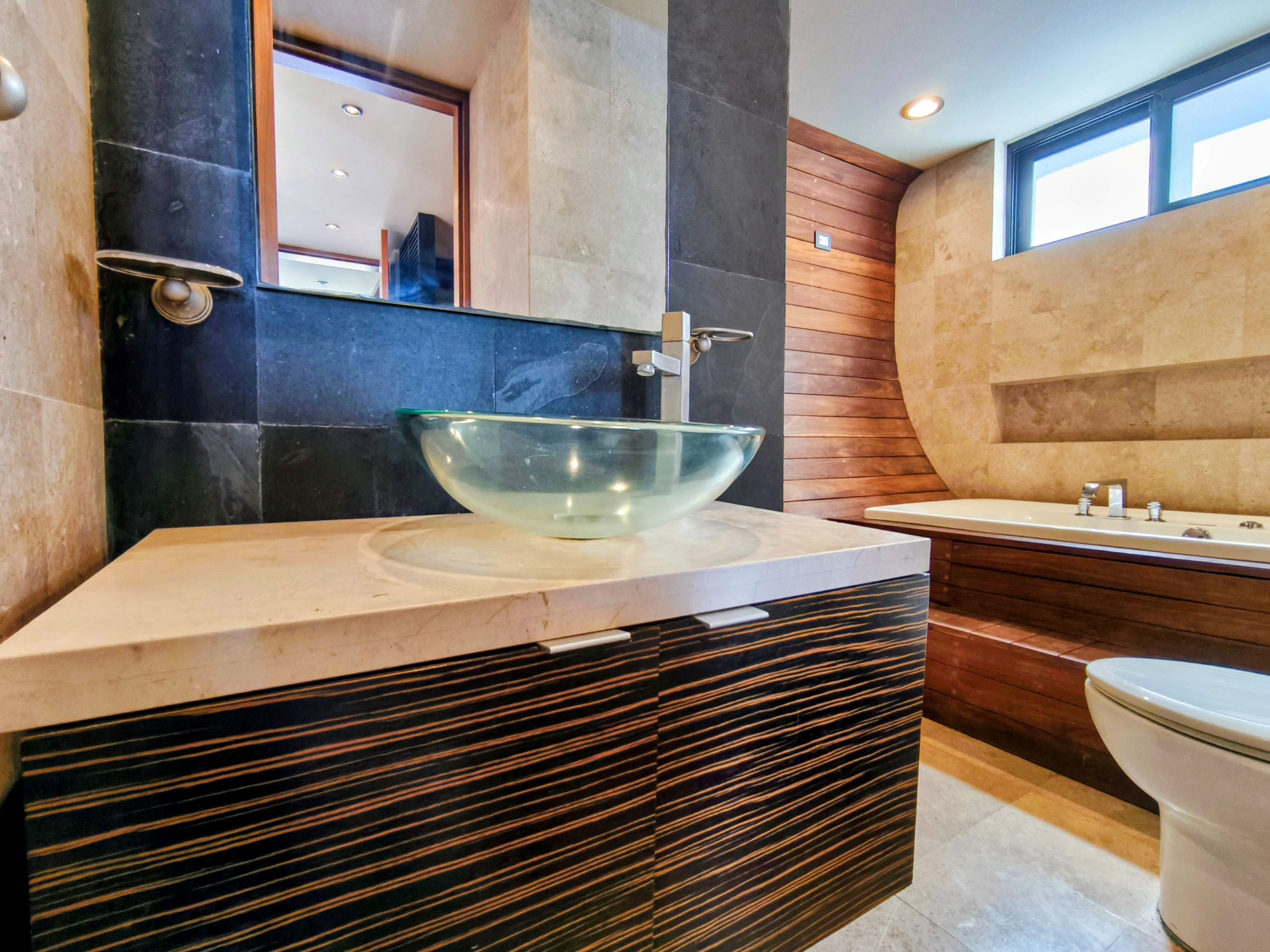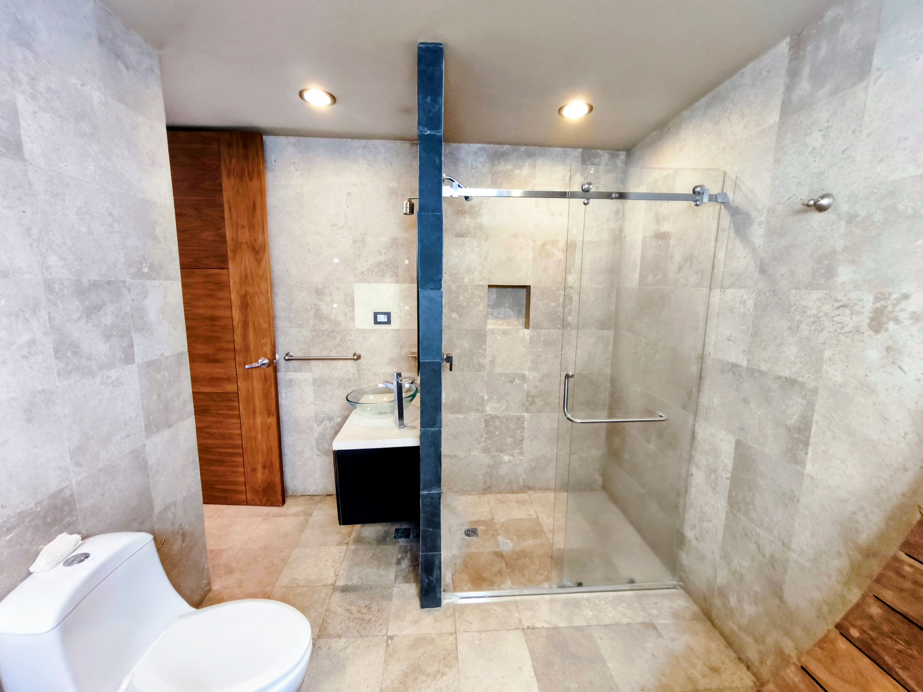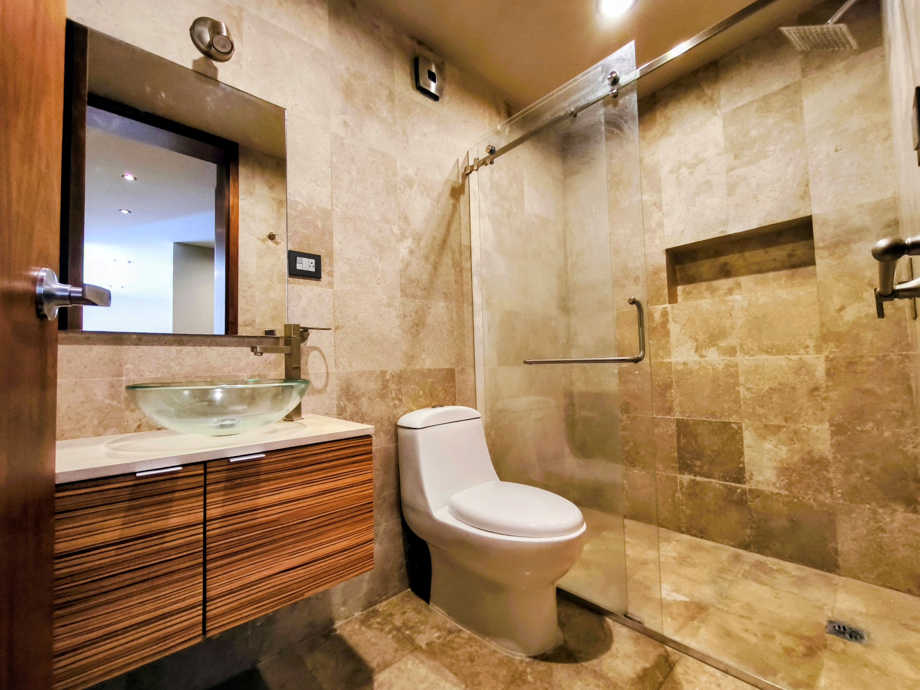 Baños con mármol y detalles arquitectónicos que elevan el estándar residencial