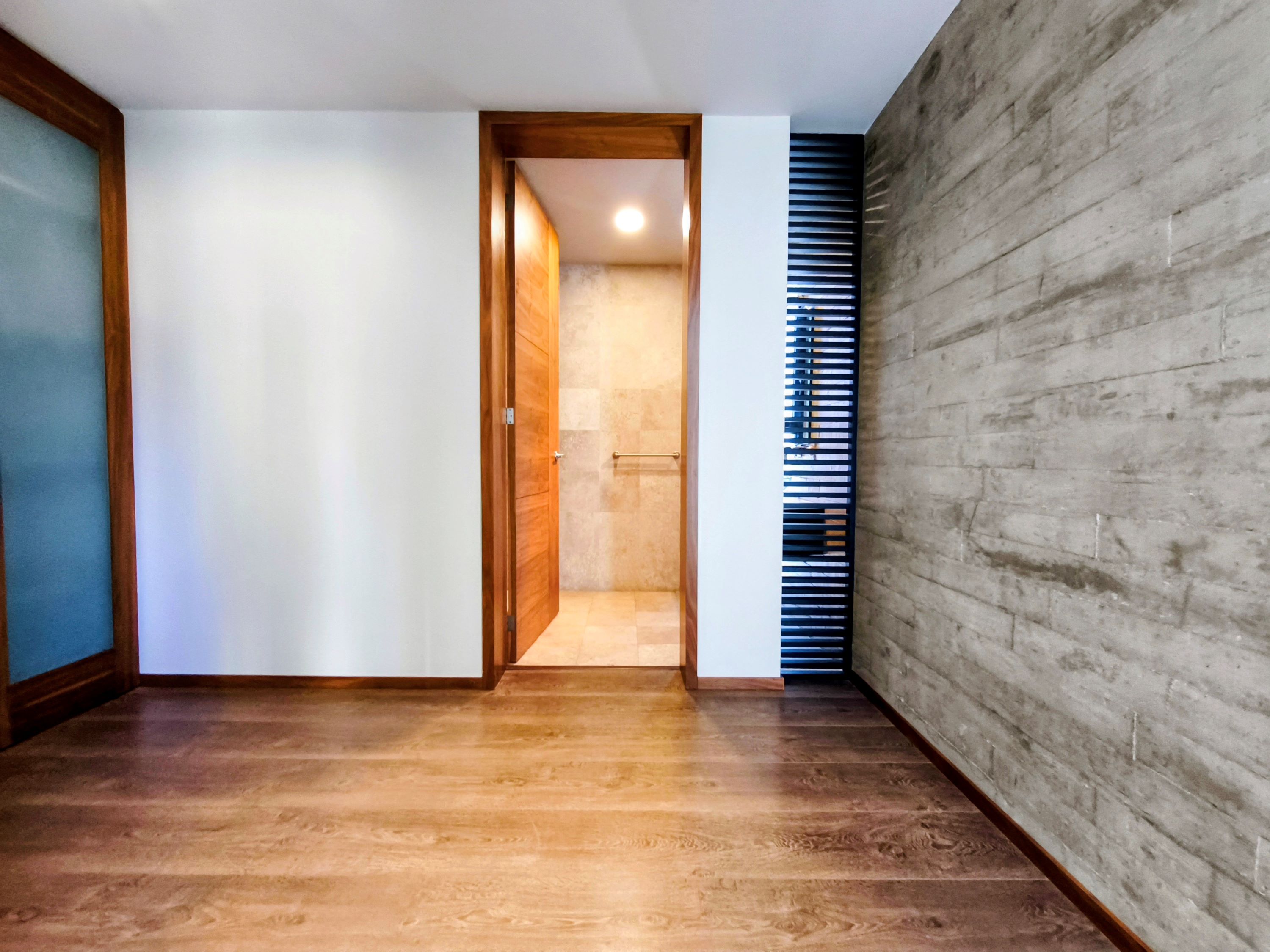 Muros con piedra natural y concreto aparente