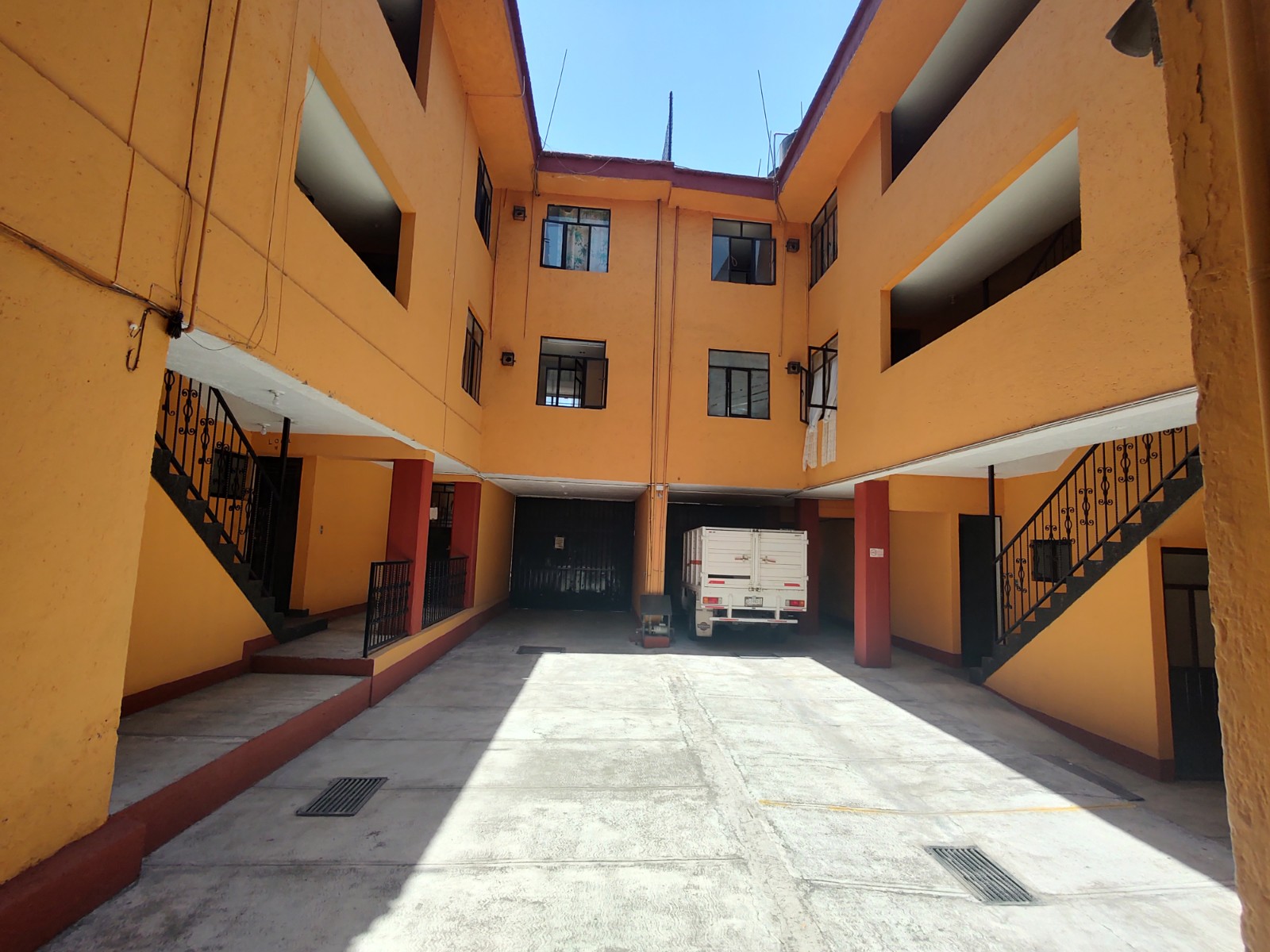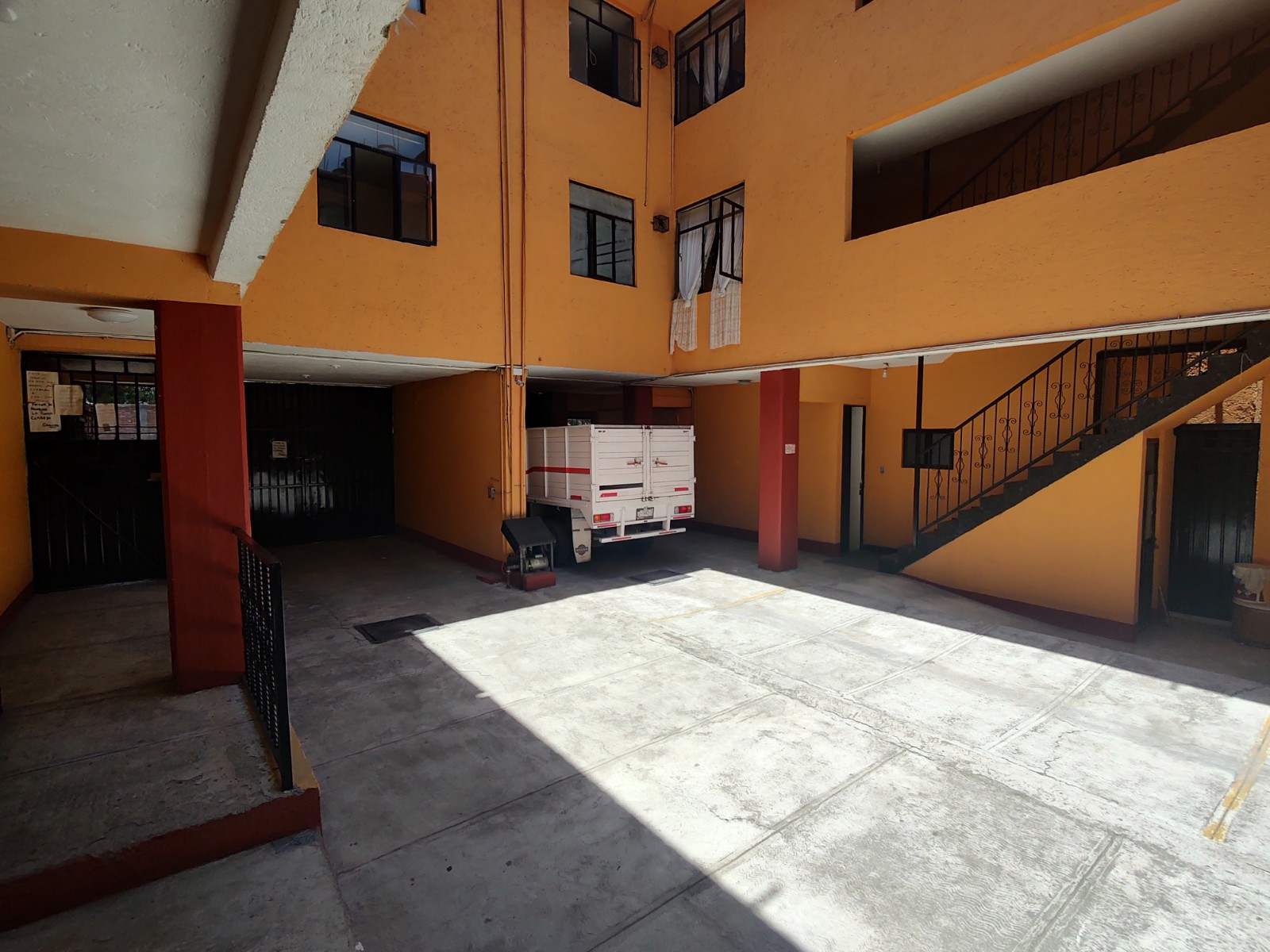 Primer nivel: 4 locales (1 con oficina), 12 cajones de estacionamiento, patio con espacio para estacionar dos autos más, departamentos.